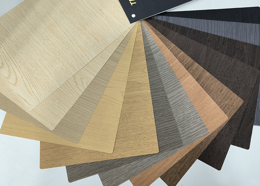仿橡木的山形纹理搭配浅米色半透效果,呈现北欧清新风;仿胡桃木的直纹结合深棕半透色调,营造意式轻奢氛围;仿樱桃木细腻纹理配合红色系半透色彩,打造中欧风格。亮面半透款式,光泽度高,适合打造时尚现代感空间;哑光半透款式,质感低调内敛,适配极简、侘寂风格。